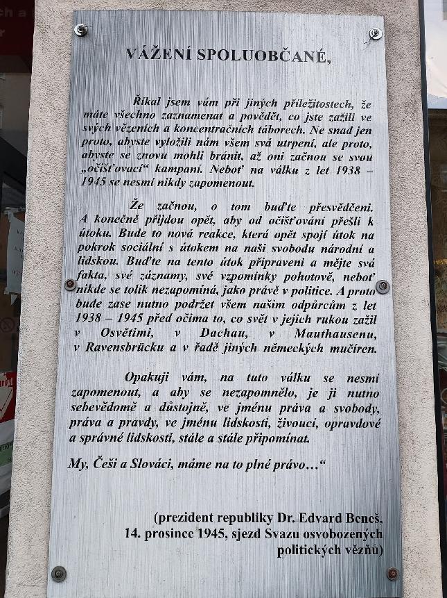 Okupace nebyla správa území. Byla to krádež státu, práv, budoucnosti. Čas má zhusta schopnost obrušovat hrany, občas se objeví pokušení relativizovat. Vidíme to aktuálně teď v Brně. V květnu se do něj sjedou tisíce Němců. Není příhodnější moment k připomínce slov Eduarda Beneše, které pronesl v květnu 1945 v Brně: Až do poslední chvíle šel německý lid do fanatického boje. Co se zdá být neuvěřitelné a nepochopitelné, to se opravdu dělo. Tento německý lid šel do krvavého vraždění jako slepý a hluchý, nevzepřel se, nezamyslil se, nezastavil se. Šel a dával se tupě nebo fanaticky zabíjet a zabíjel. Když E. Beneš hovořil na sjezdu Svazu osvobozených politických vězňů a pozůstalých 14. prosince 1945, předpokládal, že dojde k přepisování historie.