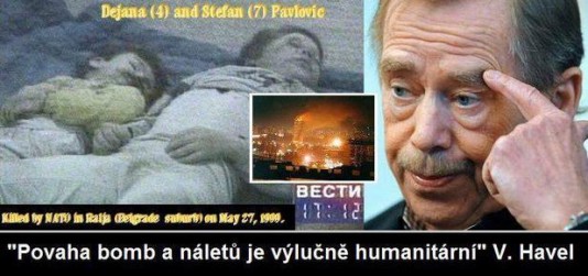 "Nálety, bomby nejsou vyvolány hmotným zájmem. Jejich povaha je výlučně humanitární.“ V. Havel , Le Monde 29.4.1999