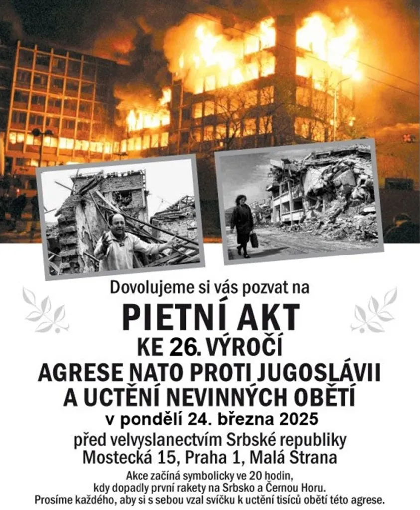 Aktualizováno - Přátelé Srbů na Kosovou zvou na pietu před srbskou ambasádou večer 24. 3. 2025 ve 20.00 hodin
