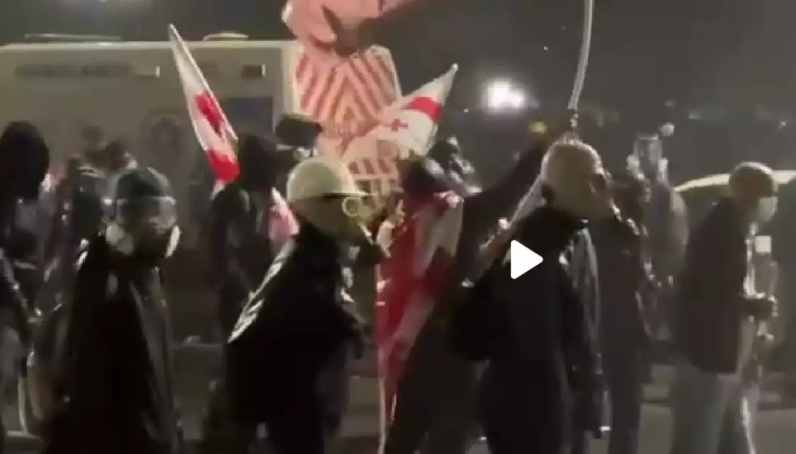 — Demonštranti prerazili železnú bránu a vtrhli do dvora paláca Orbeliani. Hádzali kamene na budovu, proti nim použili vodné delá, slzotvorné granáty a peprový sprej.