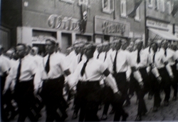 Byl jsem vyzván starostou Grünerem: "Chceš-li si zachránit život a životy tvých přátel, kup ihned dvacet lahví kořalky a vlastnoručně je rozdej mezi pochodující SS!"
